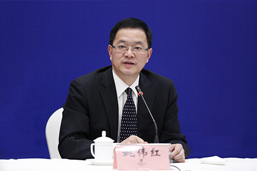 省委宣传部新闻发布处处长姚伟红主持新闻发布会