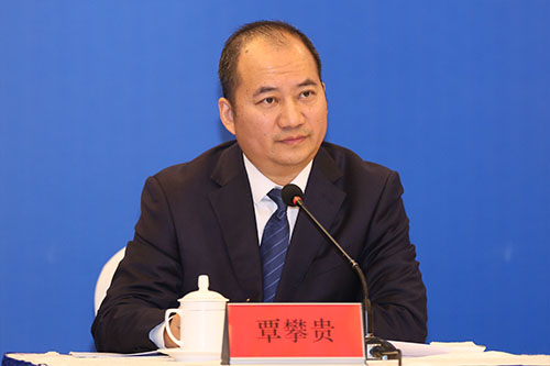 省委宣传部新闻发布处处长覃攀贵主持新闻发布会