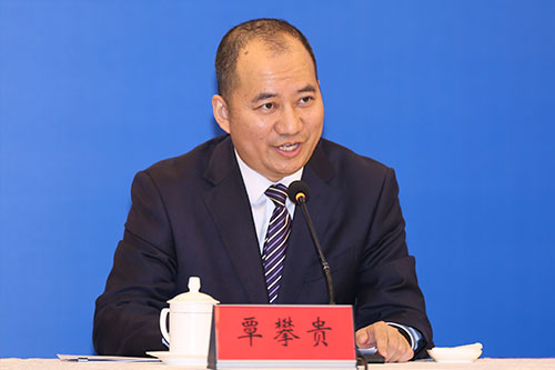 省委宣传部新闻发布处处长覃攀贵主持新闻发布会