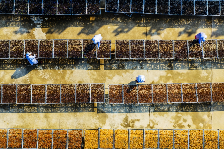 12月10日,通道侗族自治县菁芜洲镇中药材集散中心,工人在晾晒黄精。近年来,该县依托当地生态优势,大力发展中药材种植与加工产业,带动村民增收致富。石猛雷 摄(湖南图片库)