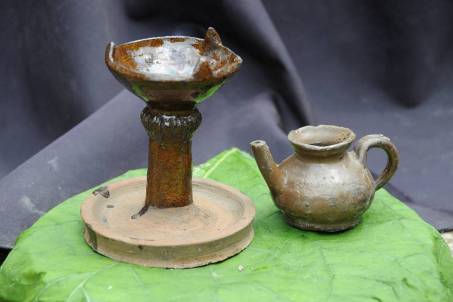 湘西土陶是土家族特有的生活用品,它的生产工序原始产品品种多,式样全。从生产工序和流程上看,它首先要选料,制丕,晒丕,装窑,烧窑等四个重要环节。产品品种主要有,碗、坛子、缸、盐、罐、油灯。