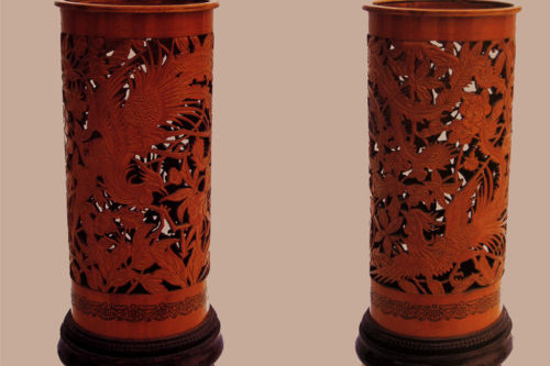 宝庆竹刻制品集观赏与实用于一体,主要有:笔筒、官帽筒、贴簧箱、笼、箧、盒、文房摆件、掛屏、屏风、纯艺术制品等。