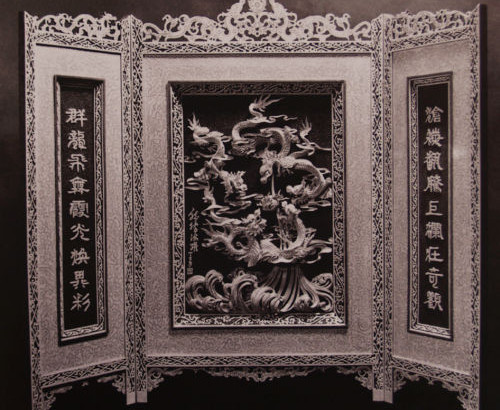 层竹簧镶嵌竹根浮雕《龙腾海跃》屏