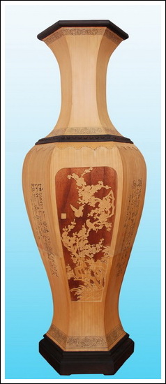 翻簧竹刻是出产在邵阳的一种传统工艺美术品。它巧妙地将楠竹的内簧制成器物的表面,即翻簧竹板,再在上面雕刻作画。这种技艺约创始于清代乾隆年间,迄今已有200余年的历史。