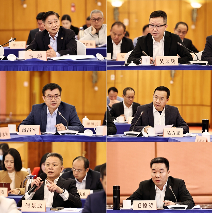 座谈会上,亿航智能、御光新材料、信维通信、新宙邦科技、智慧海洋科技、大族激光、力合科创、万兴科技、华美兴泰科技、粤港澳大湾区机器人产业联盟、航翼无人机、德达医疗等12家企业和组织负责人围绕深化区域合作、培育新质生产力、持续优化营商环境等发表意见和建议。