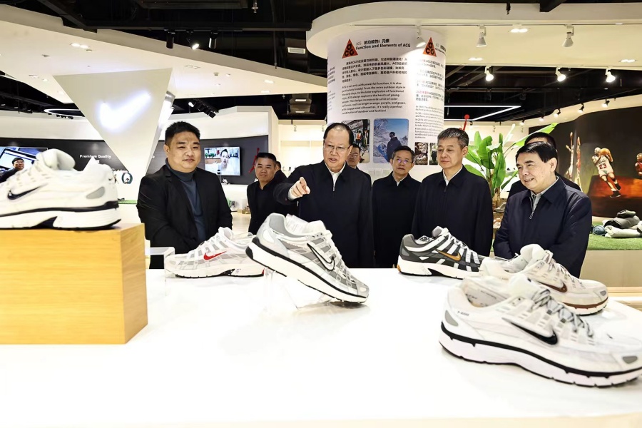 毛伟明在连泰鞋业调研。