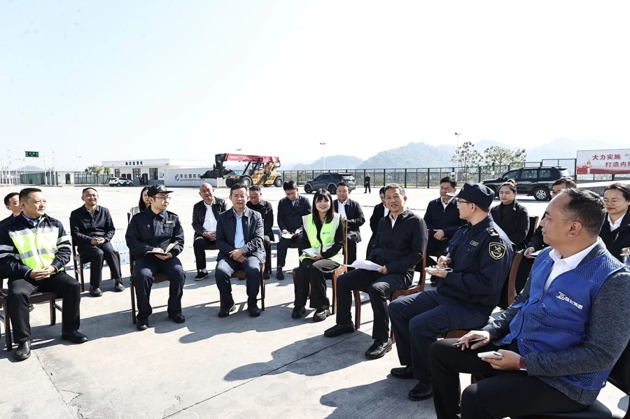 随后,毛伟明一行来到怀化国际陆港公司,了解企业最新发展情况,并与大家座谈。他说,自2021年9月启动建设以来,怀化国际陆港步入发展快车道,预计今年提前一年完成班列开行达1000列以上、货物吞吐量达1000万吨以上、总产值达1000亿元以上的“三个一千”目标。“十五五”期间,怀化市和有关部门要按照“量质并举、以质取胜,提升功能、提高效能,做高平台、做强产业,政府引导、市场主导”的要求,用好用足政策优势、区位优势、开放优势,持续在加强货物集结、优化货运结构、降低物流成本上下功夫,着力打造一批特色鲜明的支柱企业、主导产业,加快以港兴产、以产促港、港产城一体化融合发展,奋力建设一流国际陆港。