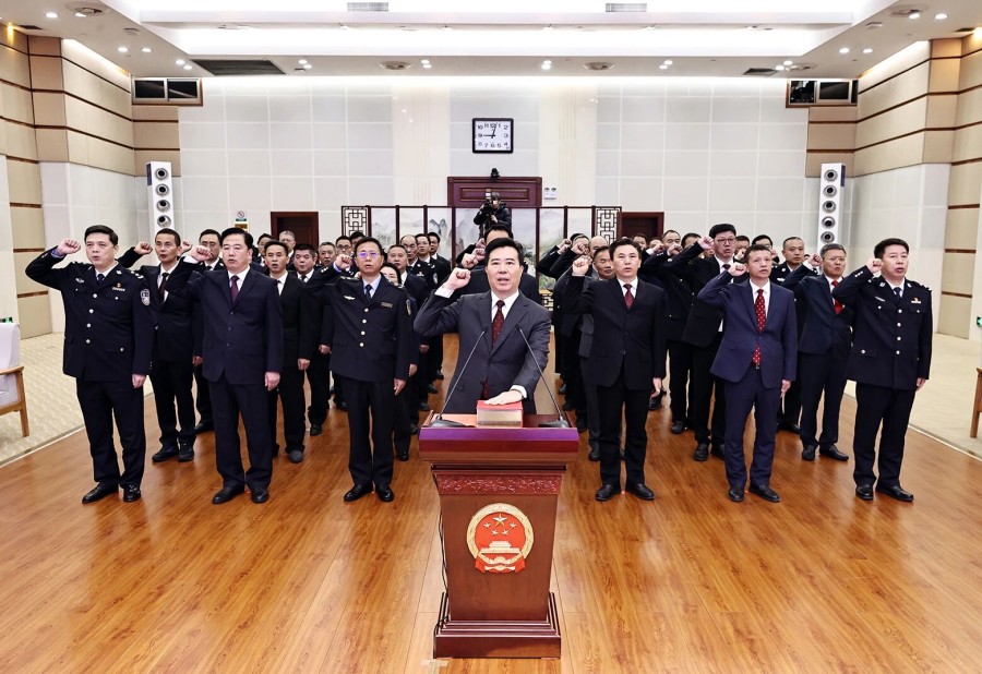根据有关规定,2024年11月26日以来省政府任命的国家工作人员,以及2024年12月4日宪法宣誓时因故未参加人员,共31个部门单位的44名同志参加本次集体宣誓。奏唱国歌后,领誓人手抚宪法、领诵誓词,宣誓人列队站立、跟诵誓词。