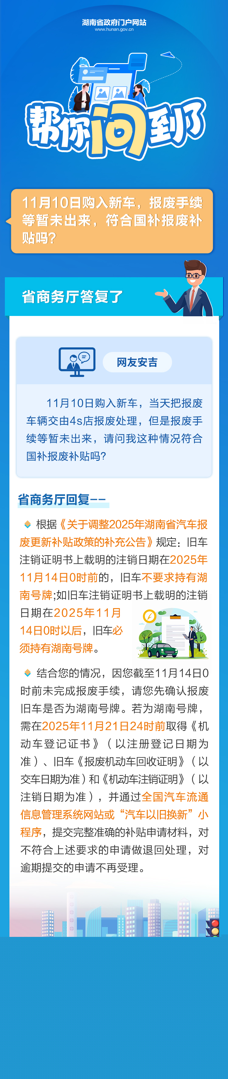 11月10日购入新车,报废手续等暂未出来,符合国补报废补贴吗?帮你问到了