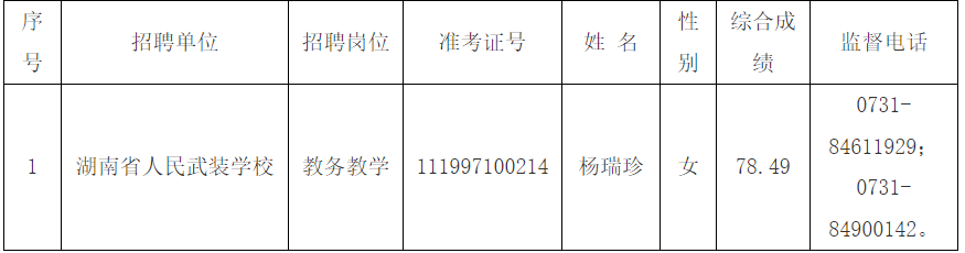 根据《湖南省省直事业单位2025年第三次集中公开招聘工作人员公告》有关要求,经报名、资格审查、笔试、面试、体检、考察等程序,确定杨瑞珍等1名同志为湖南省人力资源和社会保障厅所属事业单位2025年公开招聘第二批拟聘用人员,现予以公示。