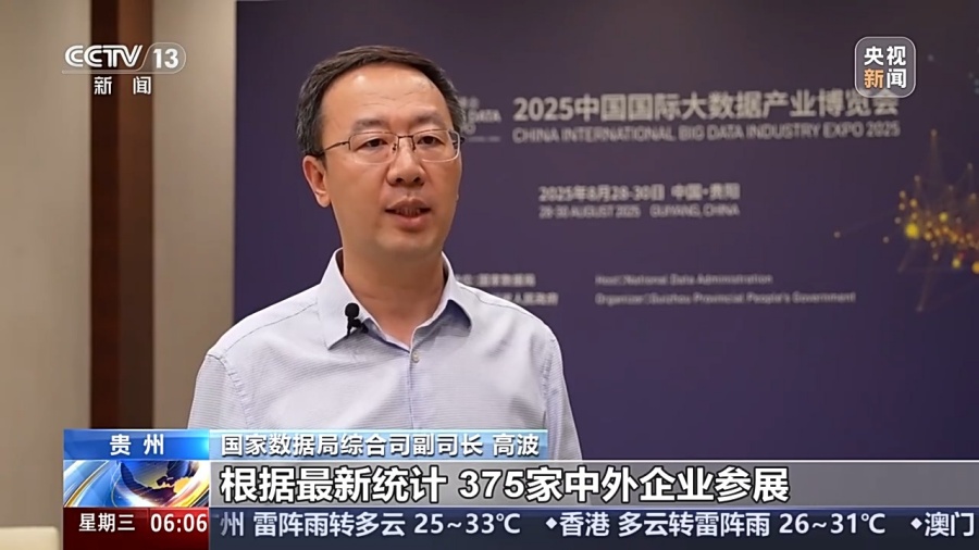 国家数据局综合司副司长 高波:根据最新统计,375家中外企业参展,带来一批数字经济领域的新技术、新产品,新方案、新应用。15000余名嘉宾将参加近百场对话交流、产业对接、商贸洽谈等活动。800余名重要中外嘉宾将出席开幕式,重点围绕数据产业、人工智能、数据基础设施等领域,分享前沿理论和创新实践。
