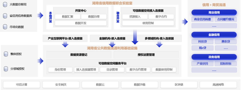 拟计划由湖南省发展改革委牵头,联合湖南数据产业集团、高校、金融机构、各市场主体等单位共同组建“湖南信用数据联合实验室”,依托省社会信用信息共享平台、省公共数据流通利用基础设施,利用可信数据空间等技术,以“破解中小微企业融资难”为切入点,赋能“湘信贷”平台健康高效运营,创新企业融资模式。在夯实“信用+金融”应用基础上,同步开展公共数据授权运营,加快创新“信用+”场景,深化数据价值挖掘,建立健全社会信用体系。