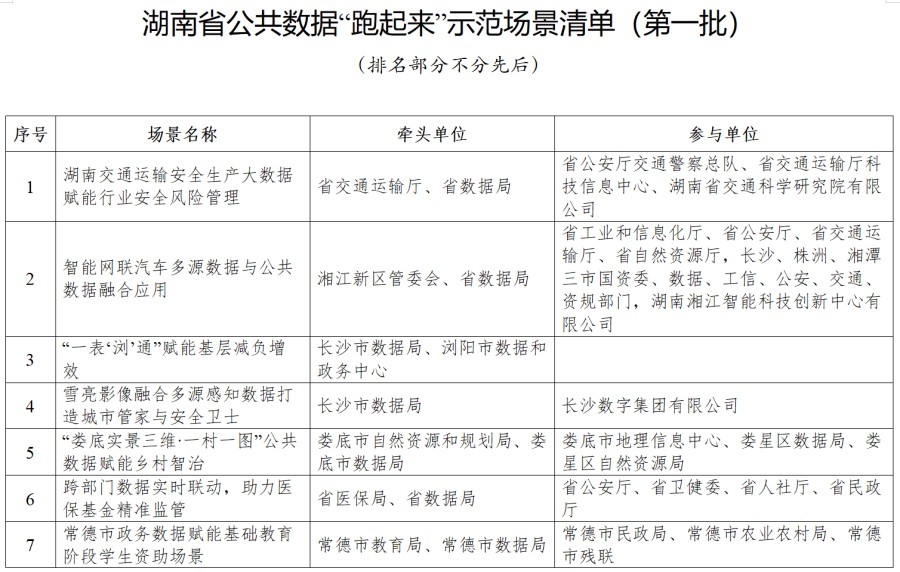 附件:湖南省公共数据“跑起来”示范场景清单(第一批)
