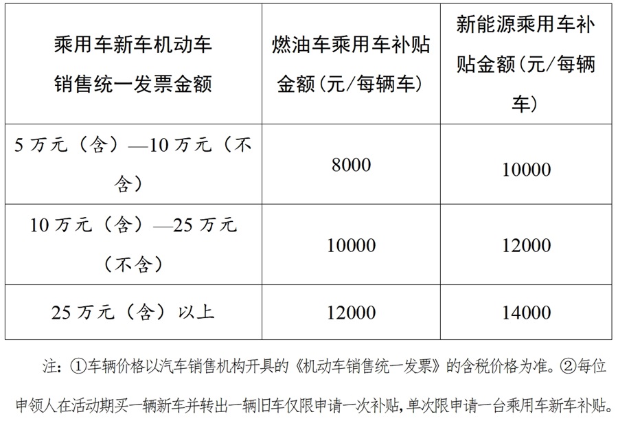答:申领人通过全部审核流程后,根据车辆类型和价格分档予以补贴。