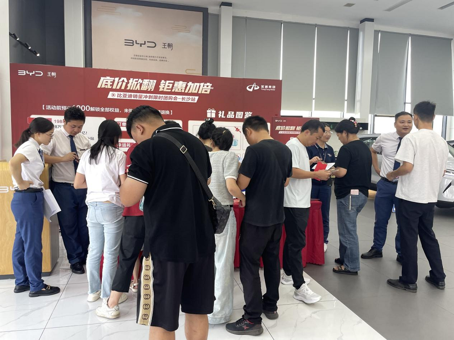 图为比亚迪王朝网永通华欣4S店销售现场。
