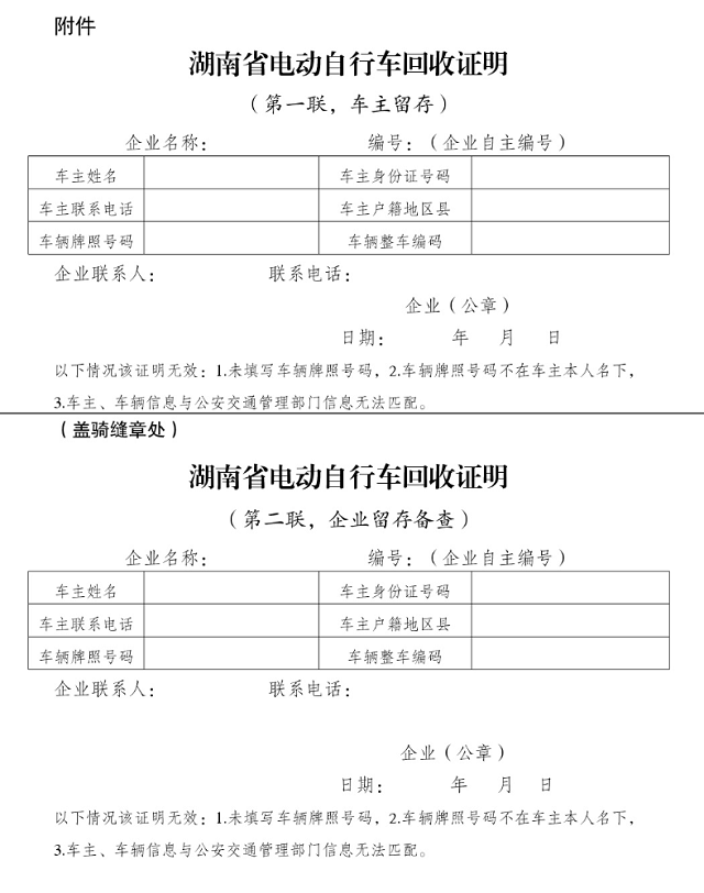 附件:湖南省电动自行车回收证明