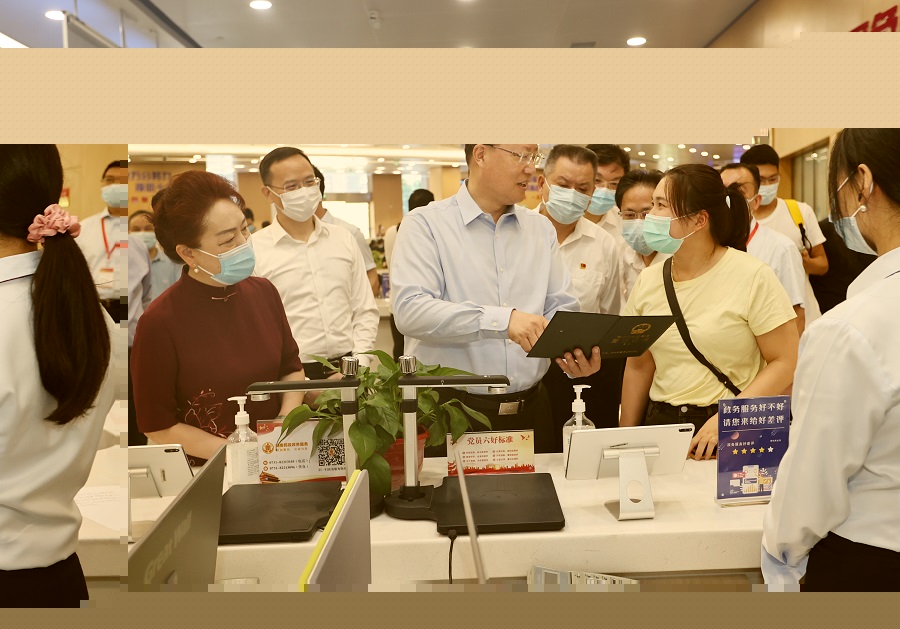 6月1日上午,省委副书记、省长毛伟明赴省政务局调研。图为毛伟明在政务服务大厅与工作人员交流。