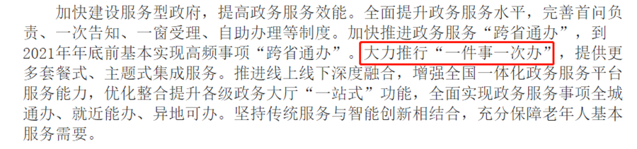 2019年,湖南创新推出“一件事一次办”改革,先后梳理发布296件“事”,出台“一件事一次办”服务规范湖南省地方标准,线下在各级政务服务大厅设立“一件事一次办”专窗,线上依托一体化政务服务平台,建立“一件事一次办”专区,极大地便利了企业群众办事。